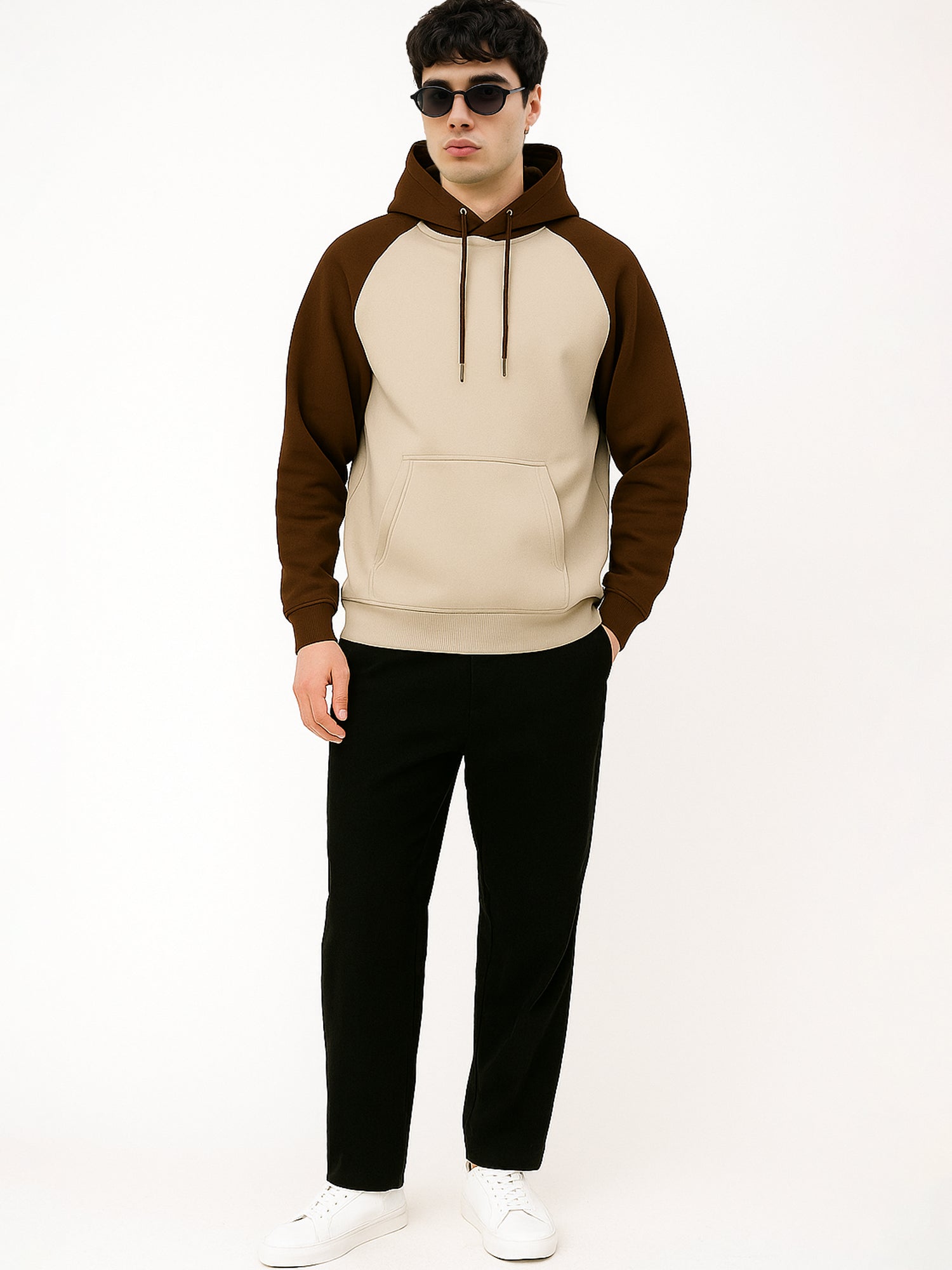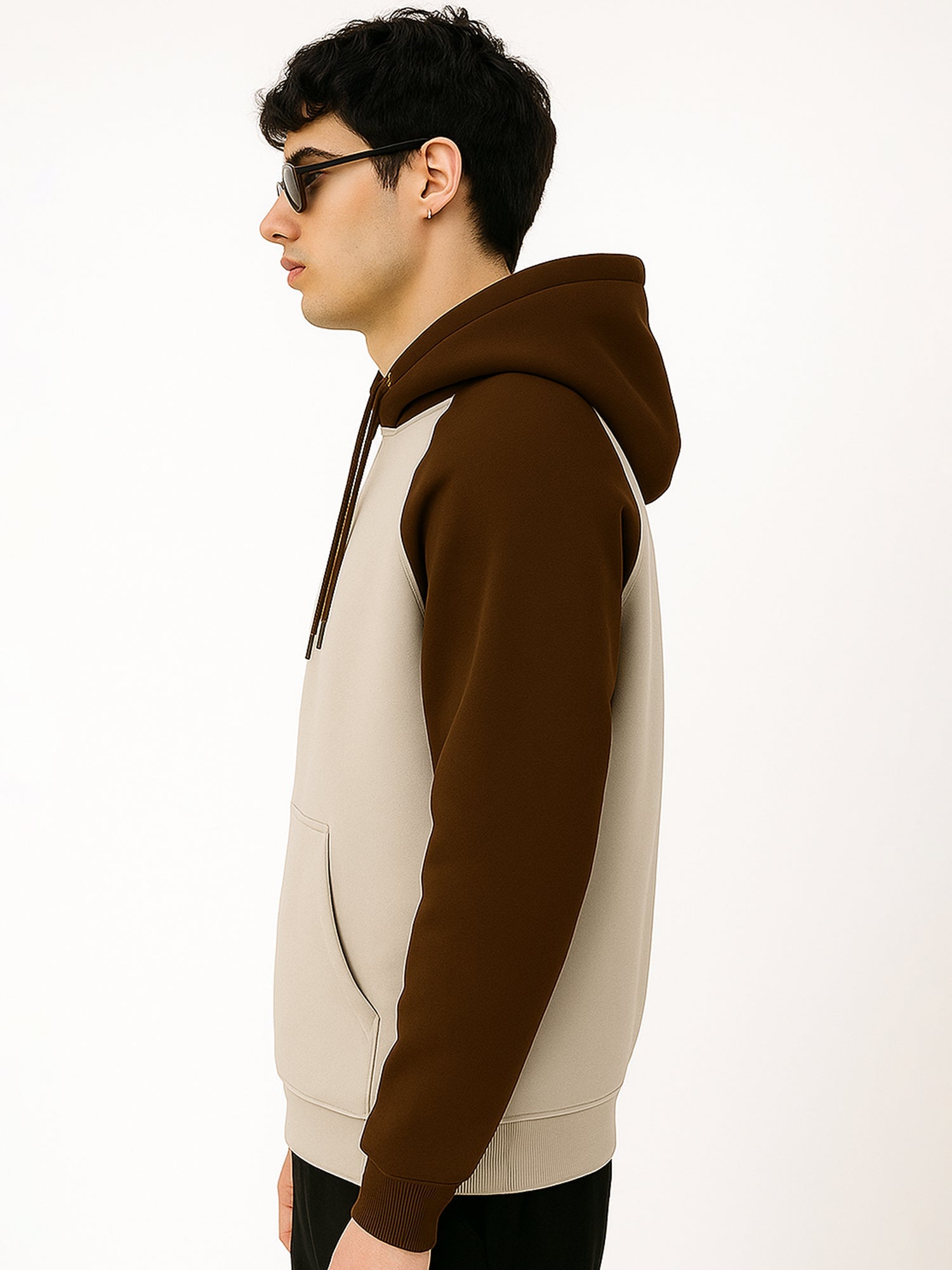 Colorblock Hoodie Full Sleeve Brown Sweatshirt