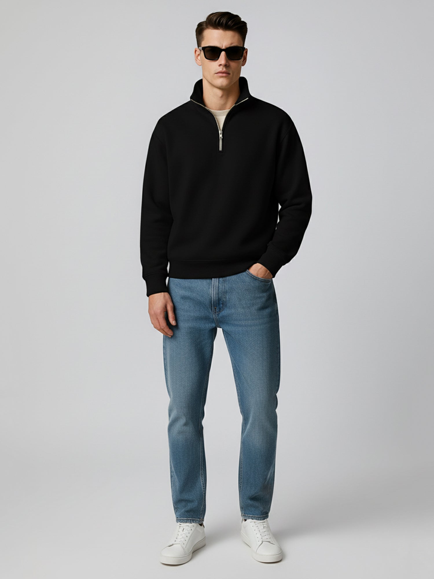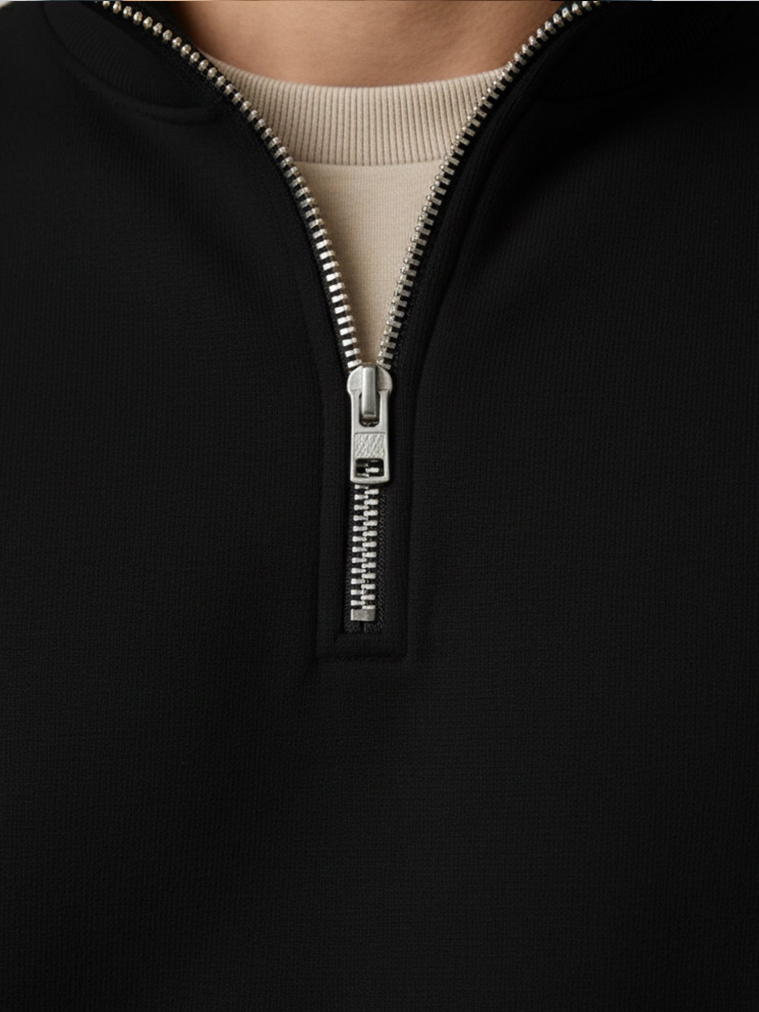 Cozy Cut Zipper Full Sleeve Black Sweatshirt