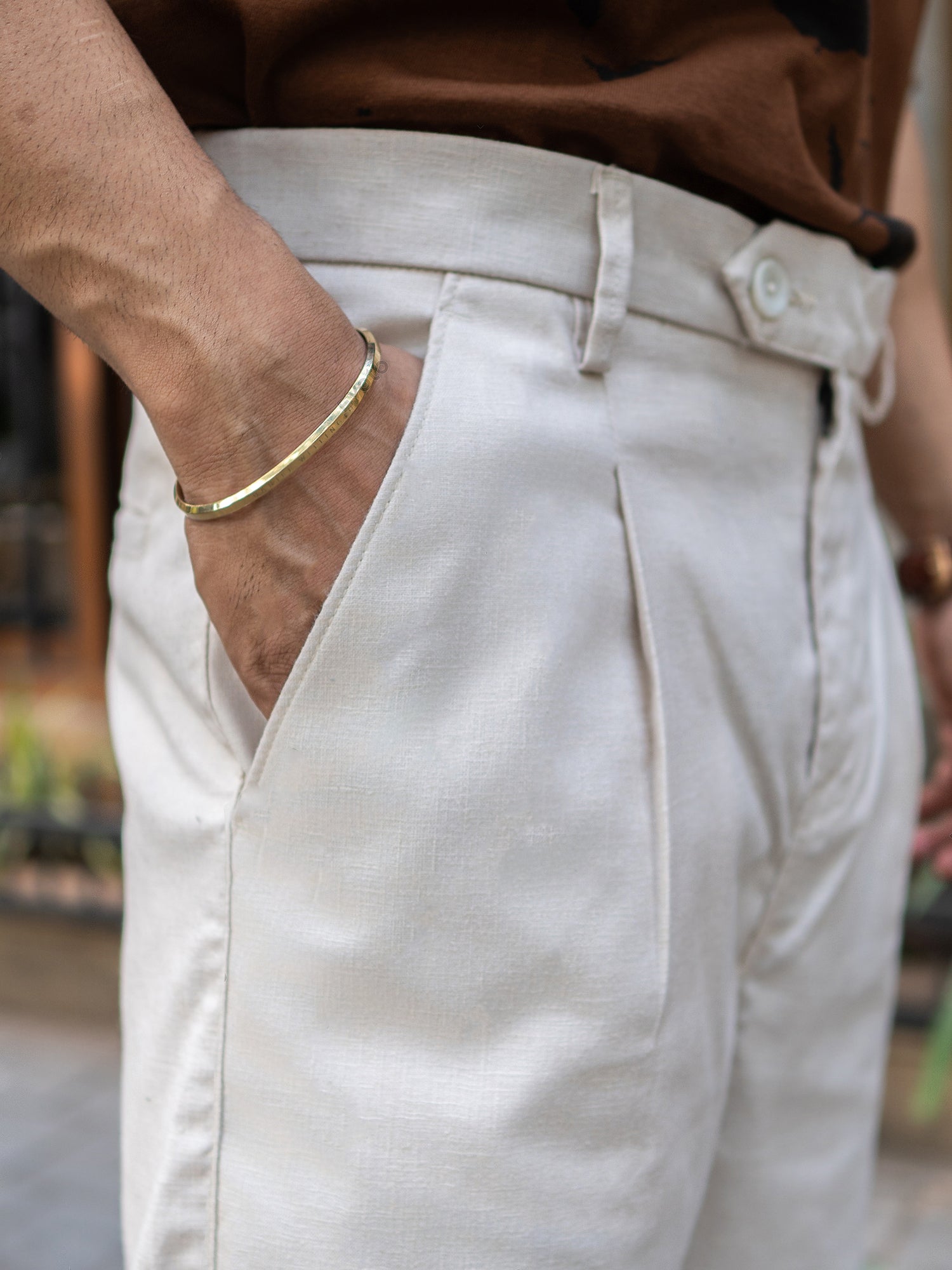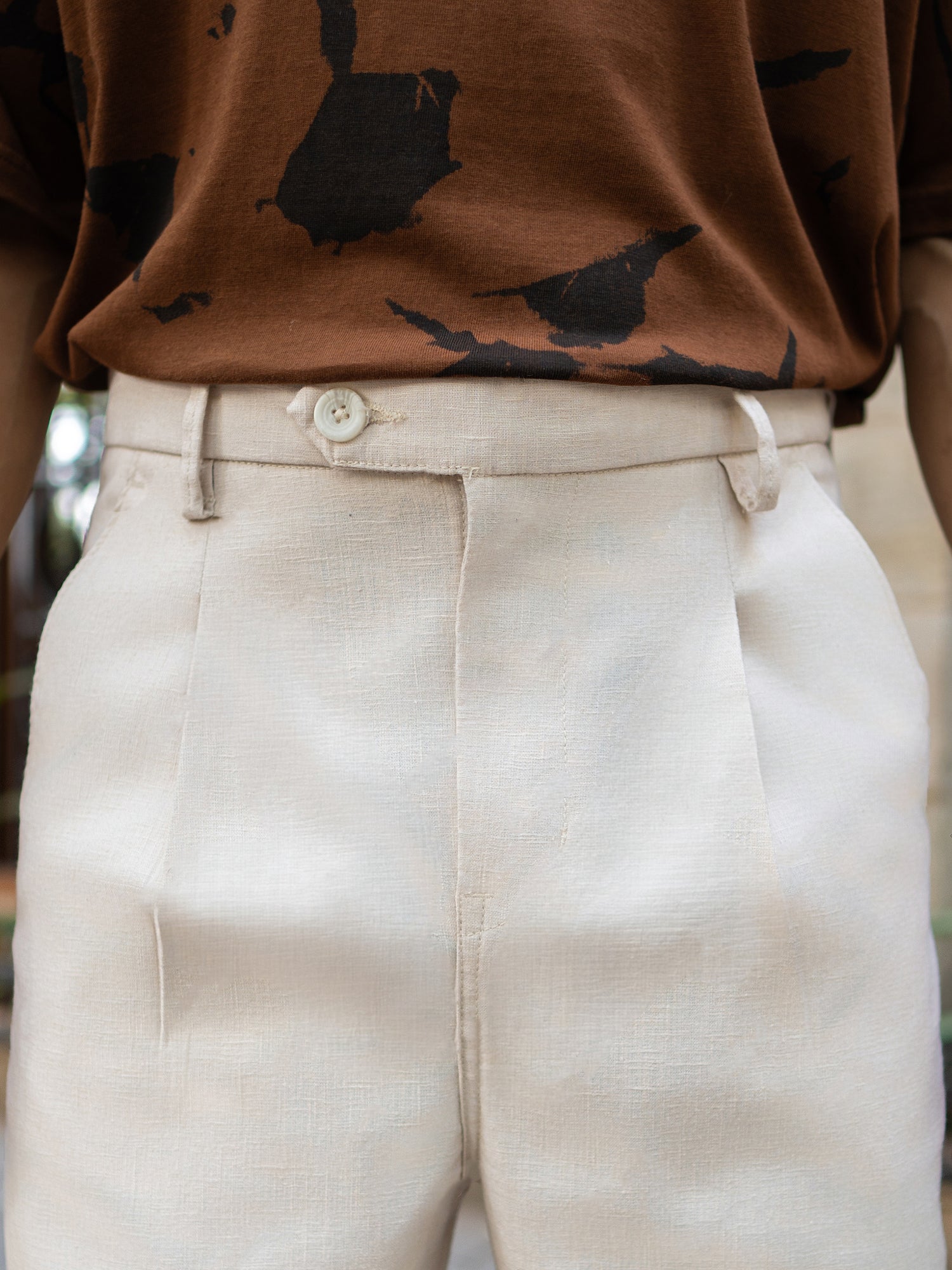 Single Pleat Khaki Linen Trouser