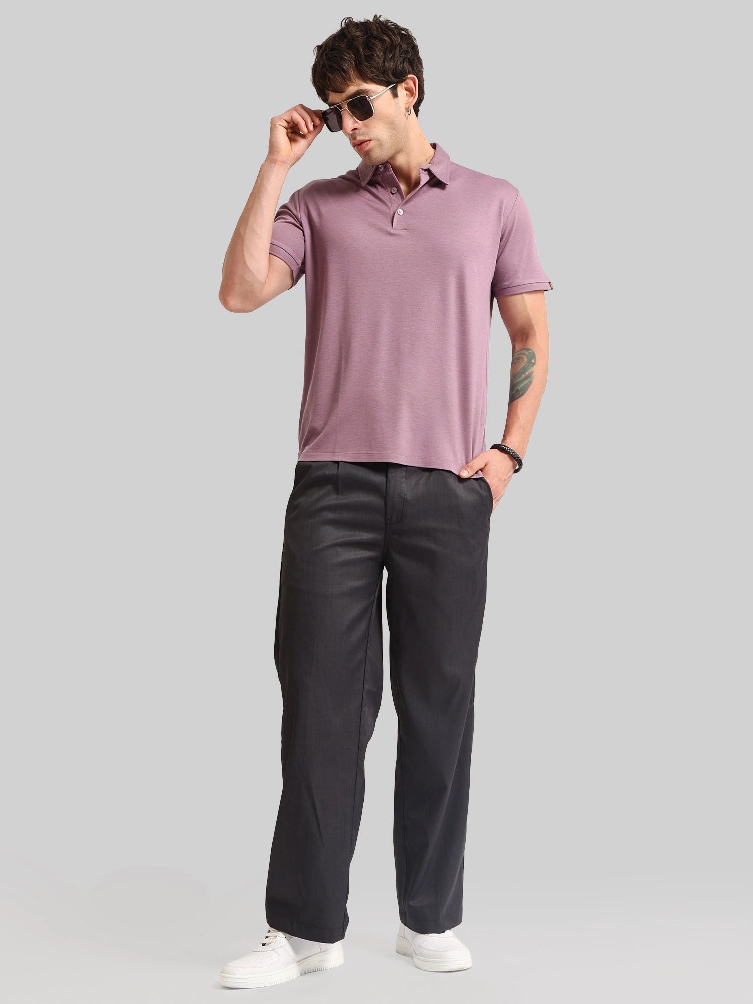 Basic Plain Dark Onion Half Sleeve Polo T-Shirt