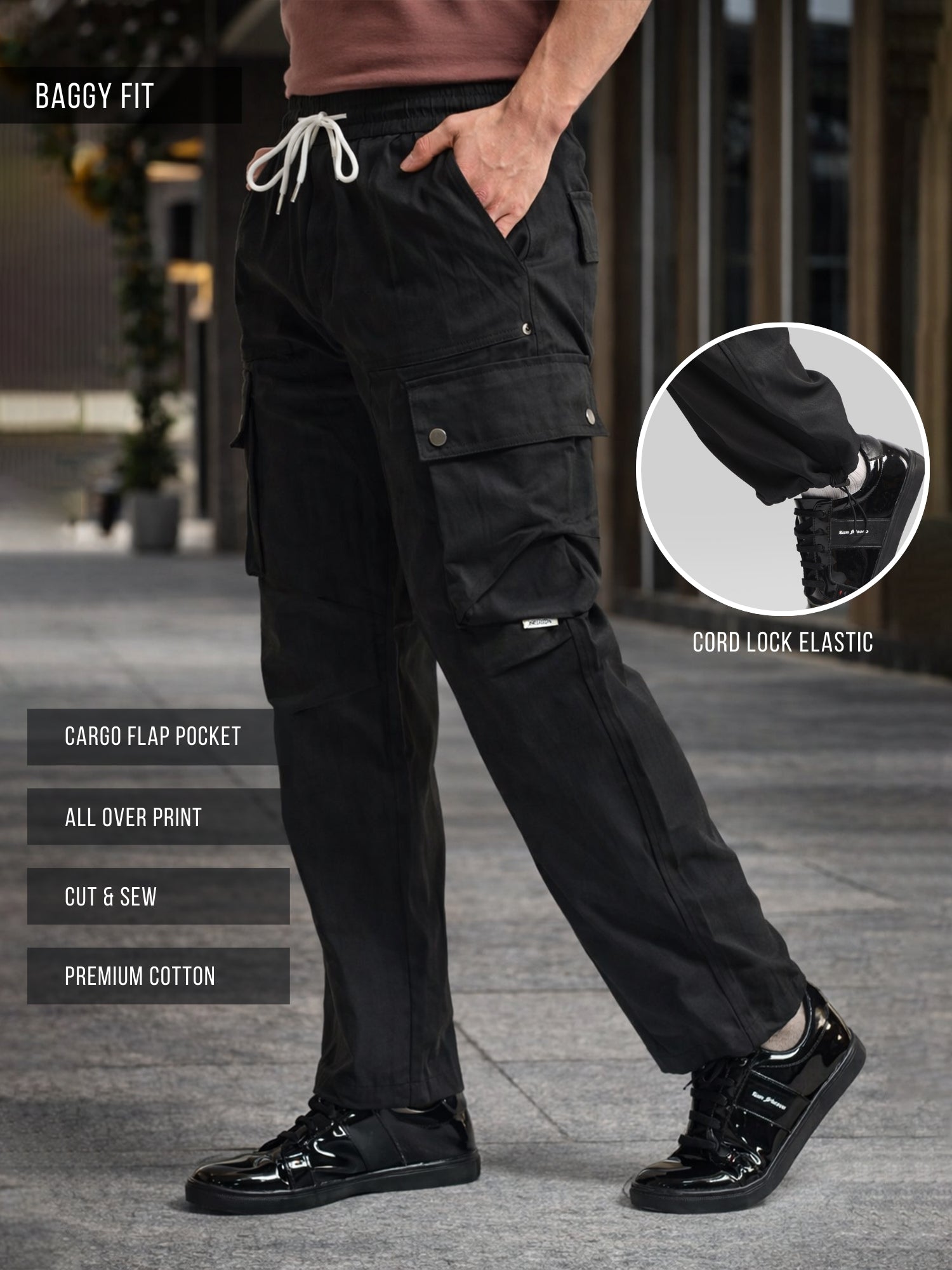 Drift AOP Black Baggy Fit Cargo