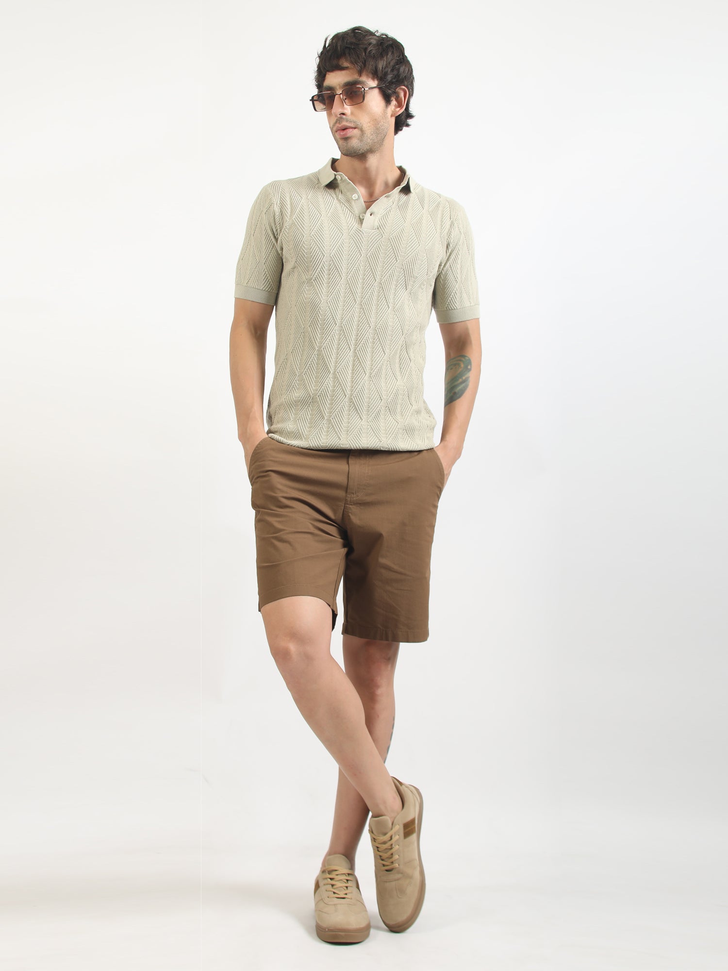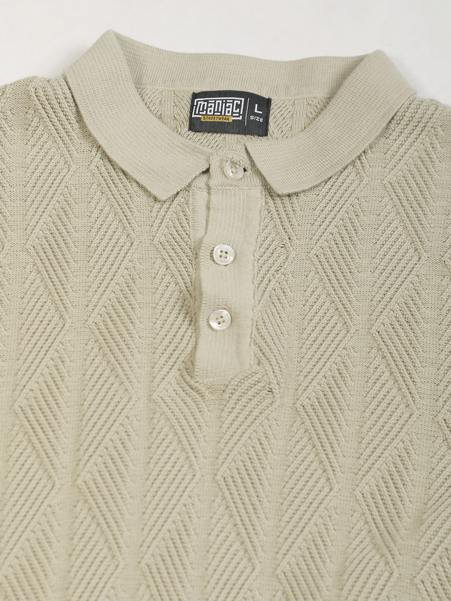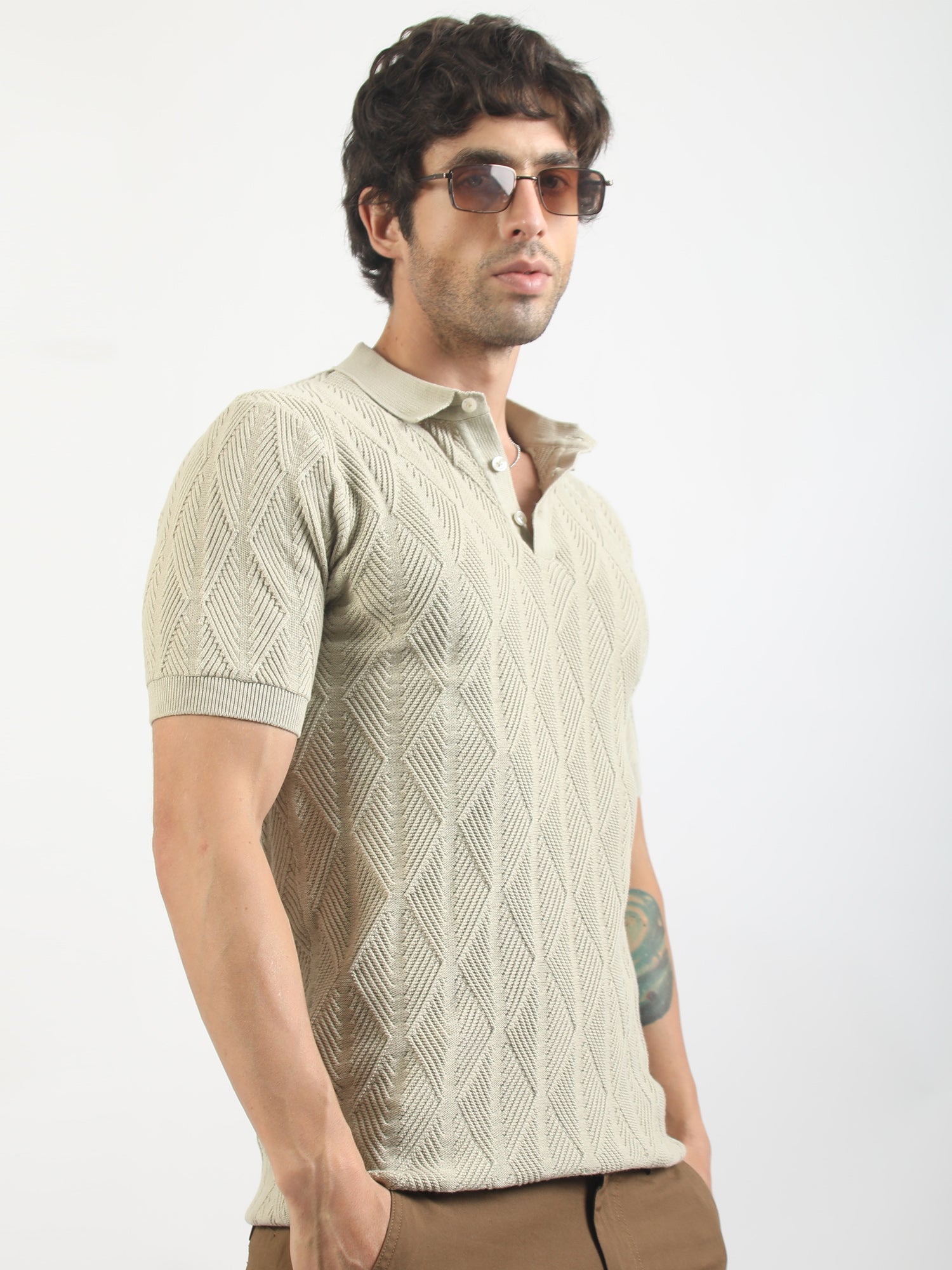 Geo Weave Flatknit Cotton Biscuit Half Sleeve Polo T-Shirt