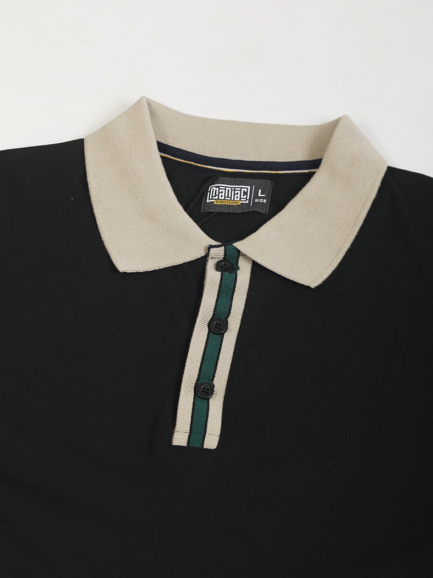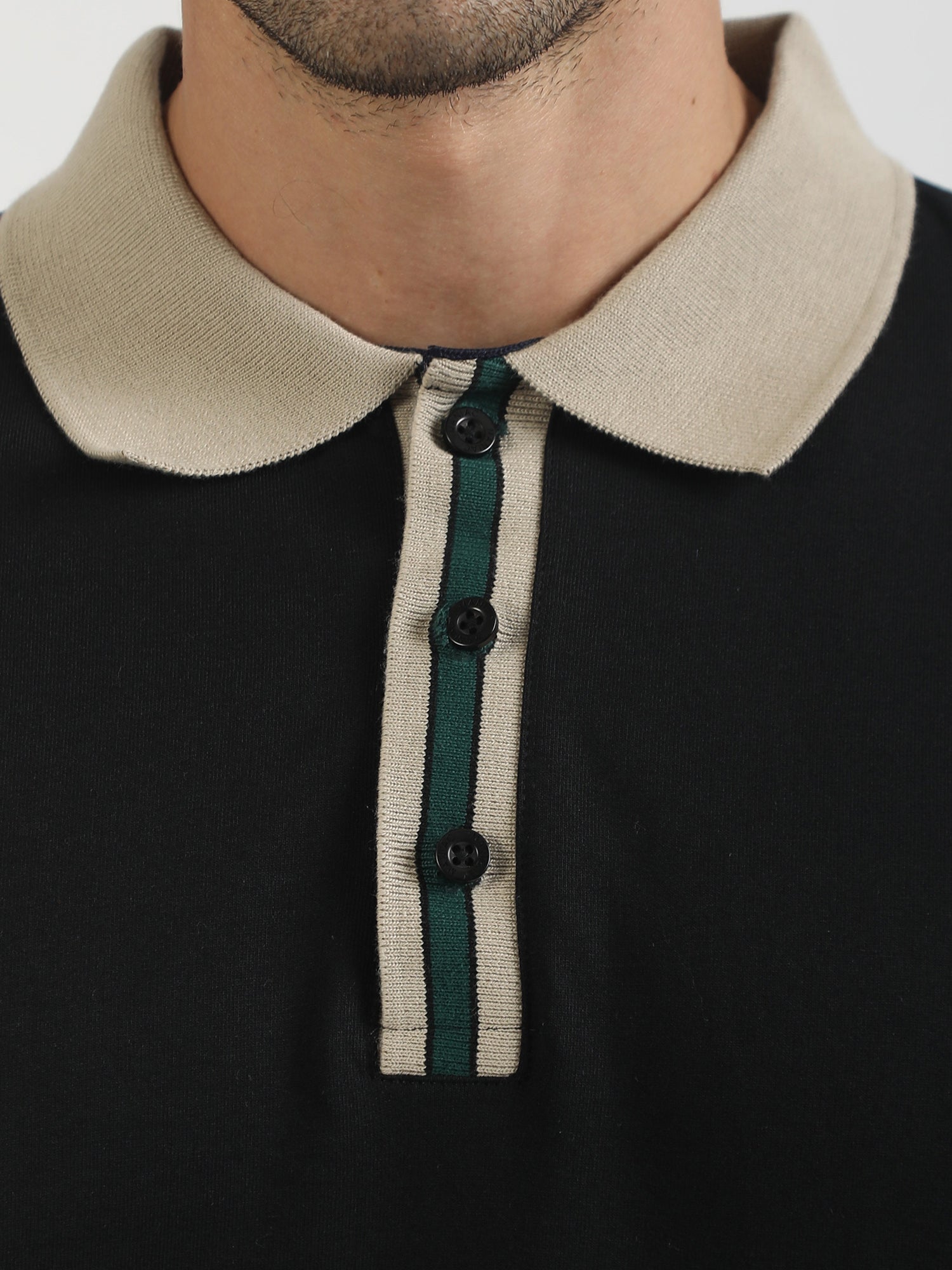Collar Contrast Black Half Sleeve Polo T-Shirt