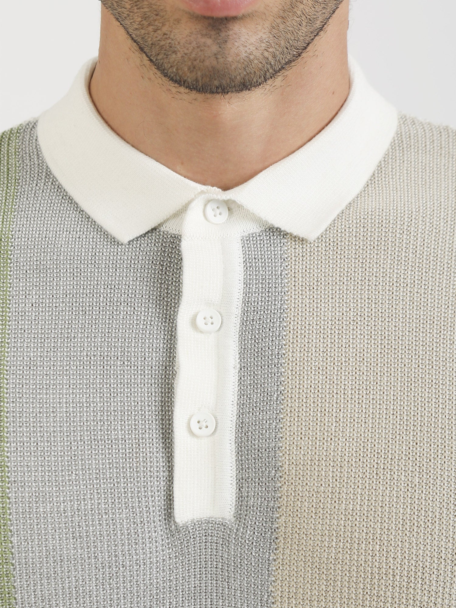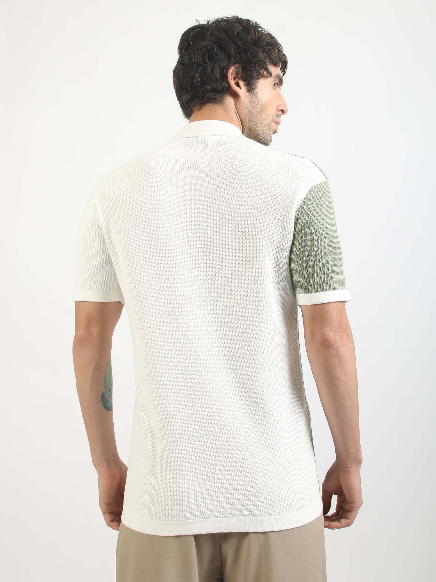 Cream Clay Flat-Knit Half Sleeve Polo T-Shirt