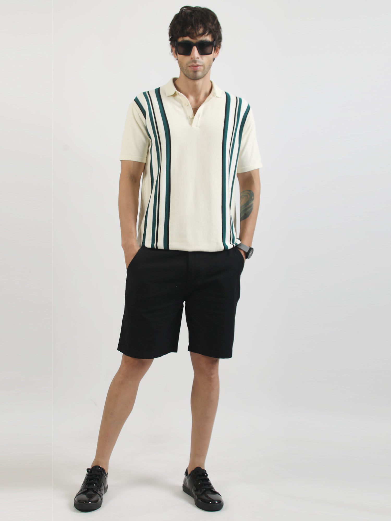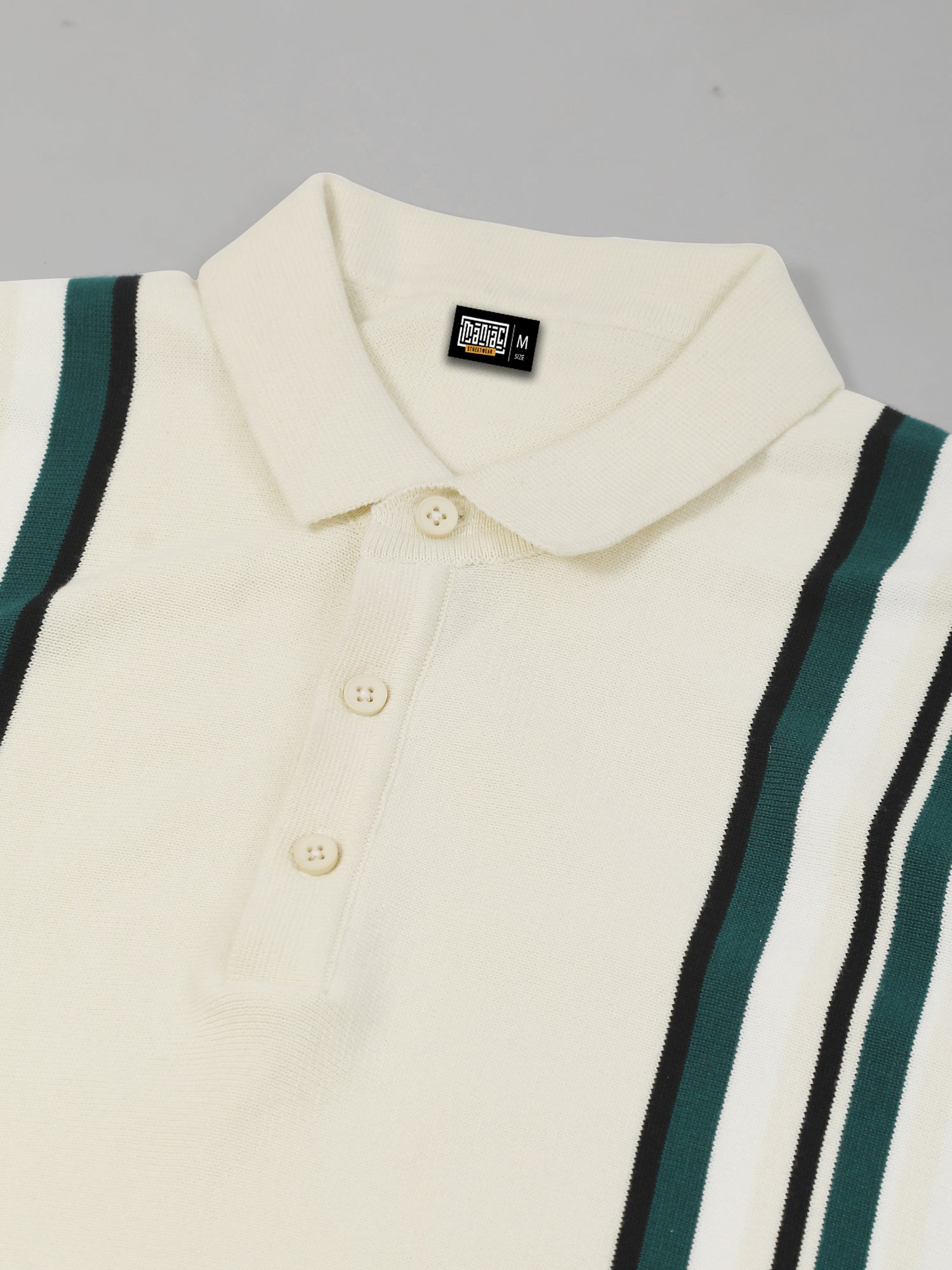 Cape Town Stripe Flat-Knit Polo – Cream Half-Sleeve