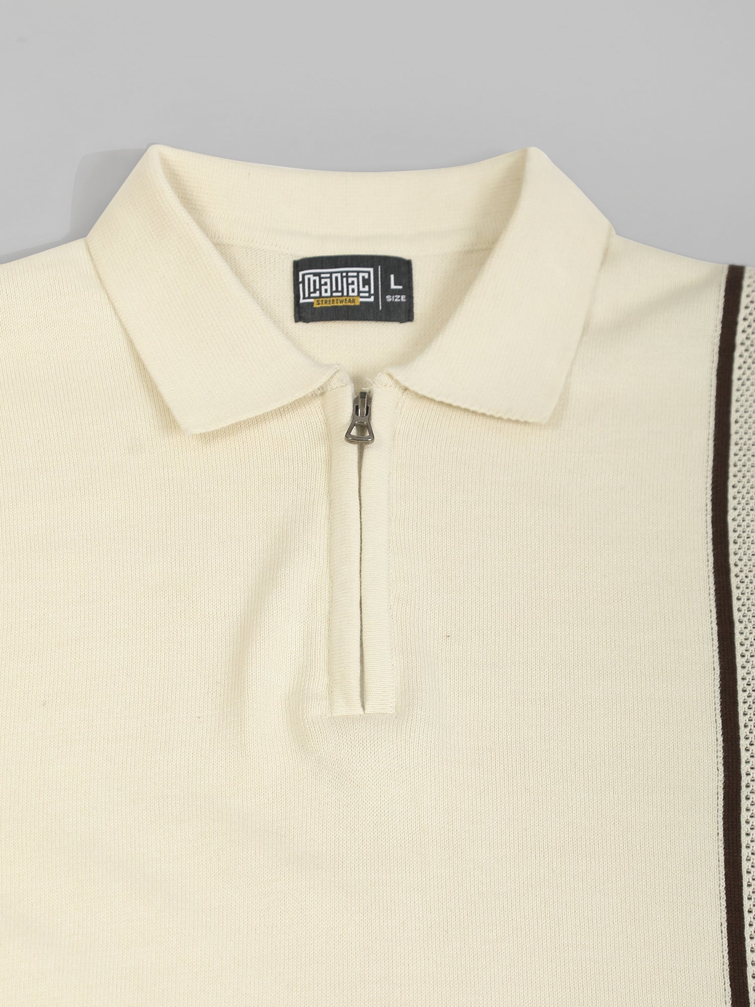 Cream Toronto Line Flat-Knit Half Sleeve Polo T-Shirt