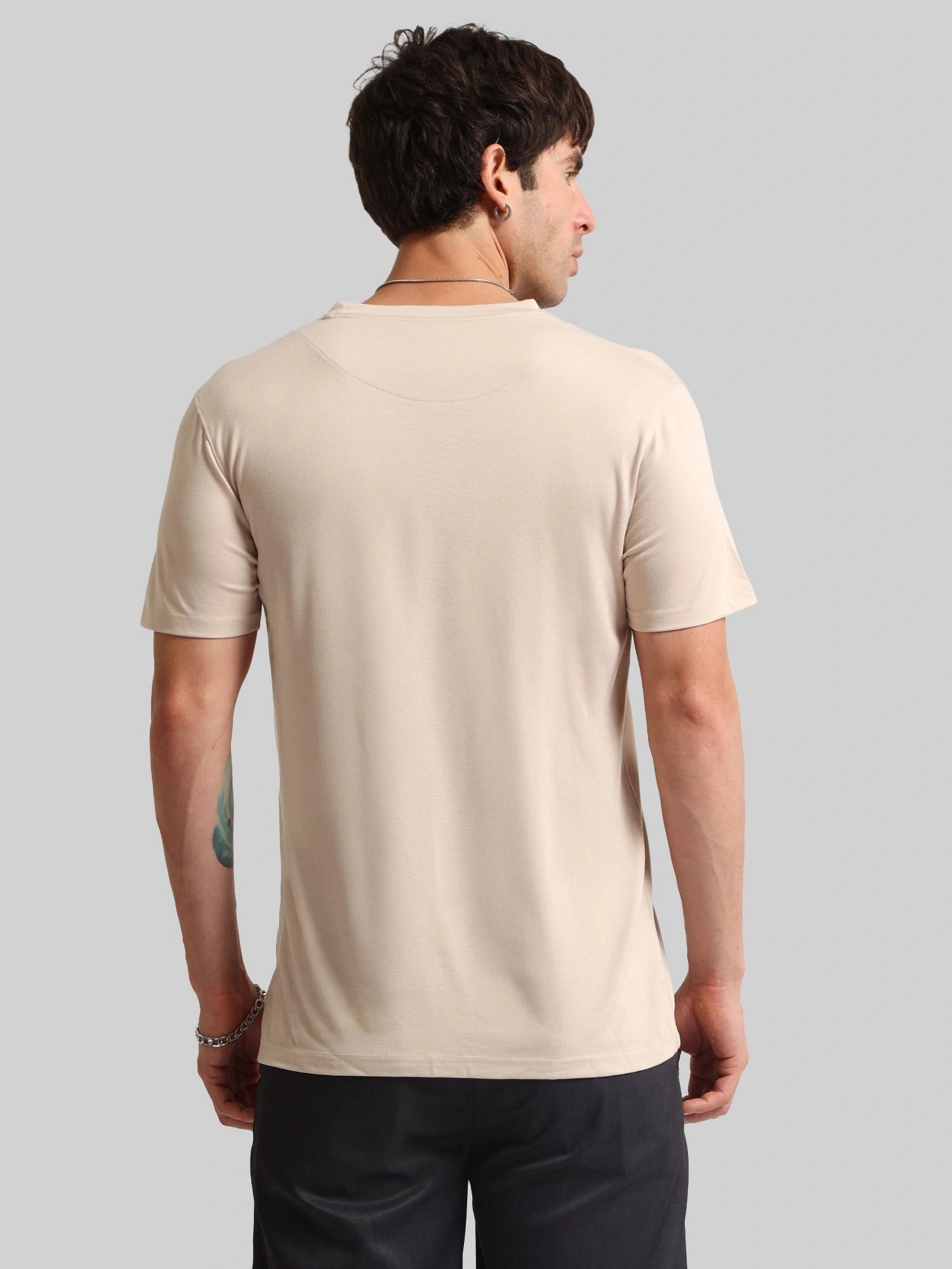 Basic Solid Biscuit Half Sleeve T-Shirt