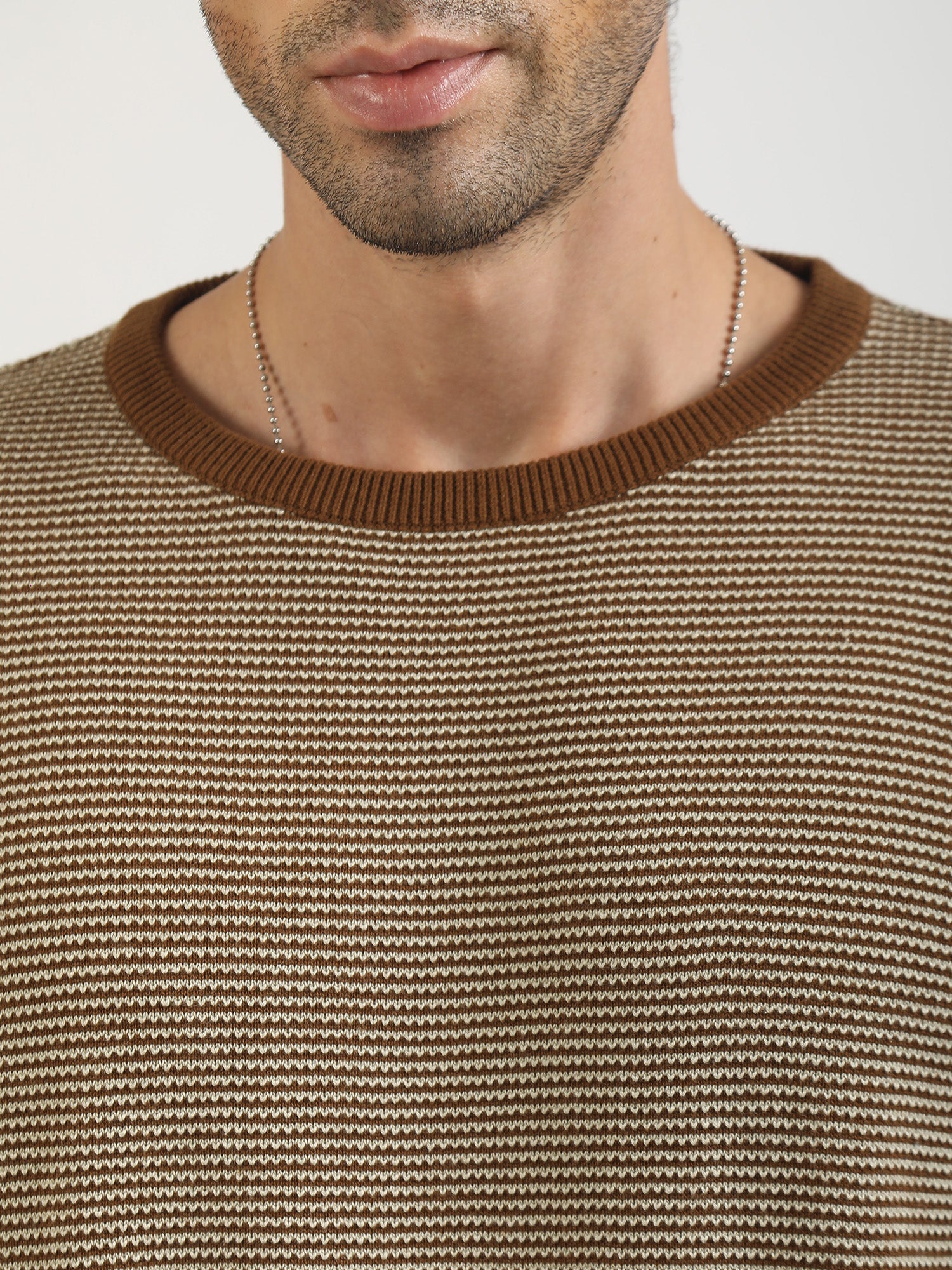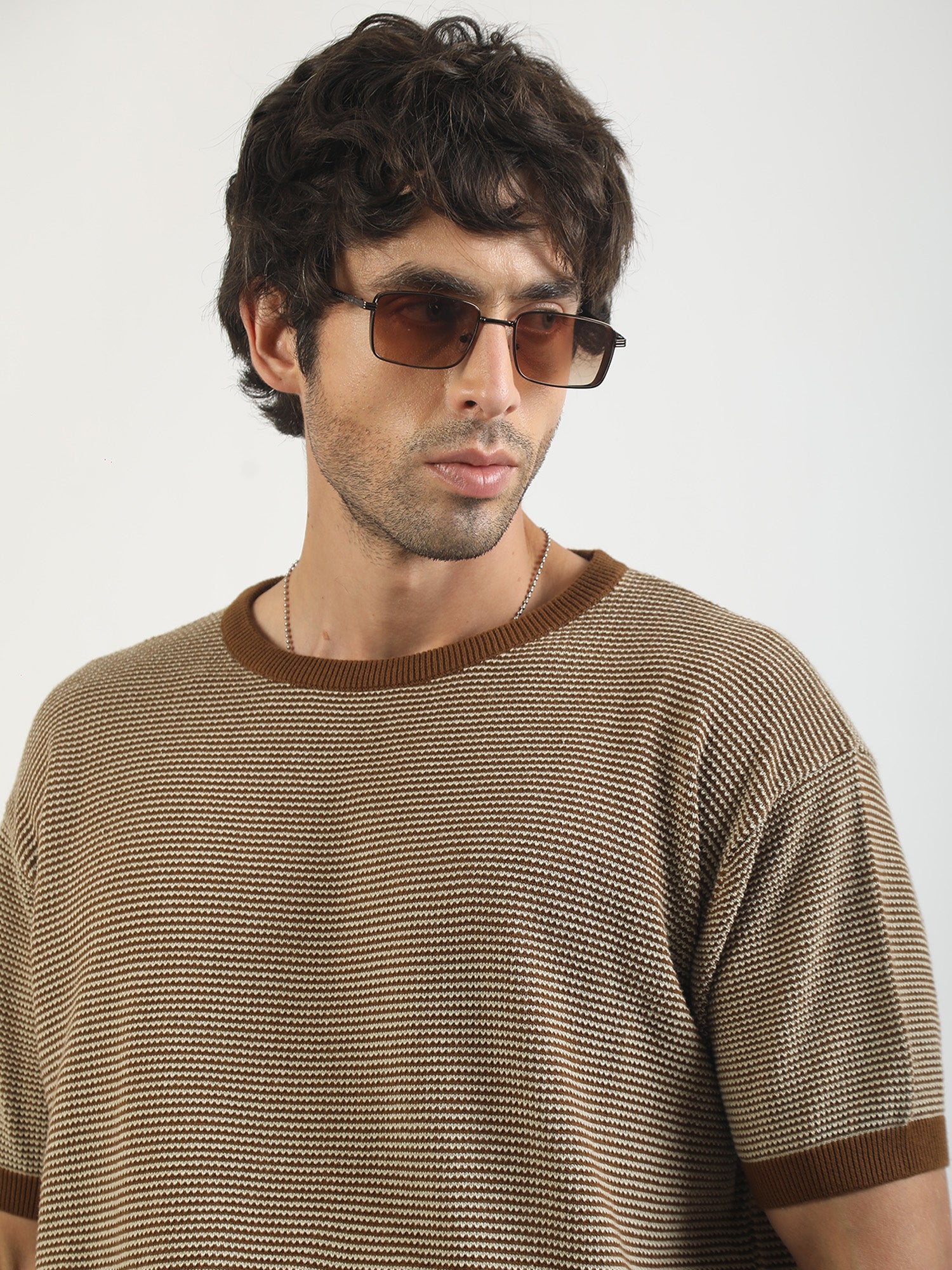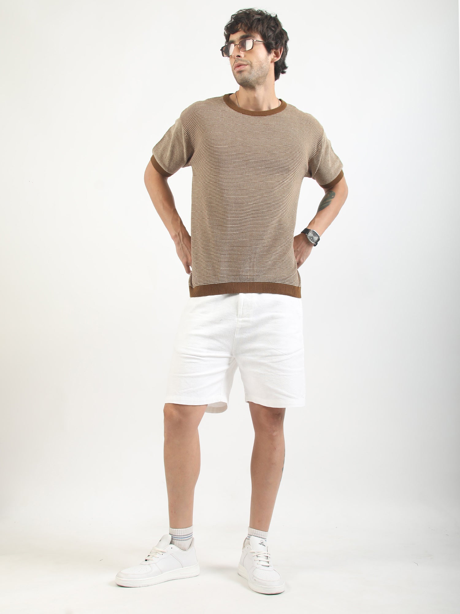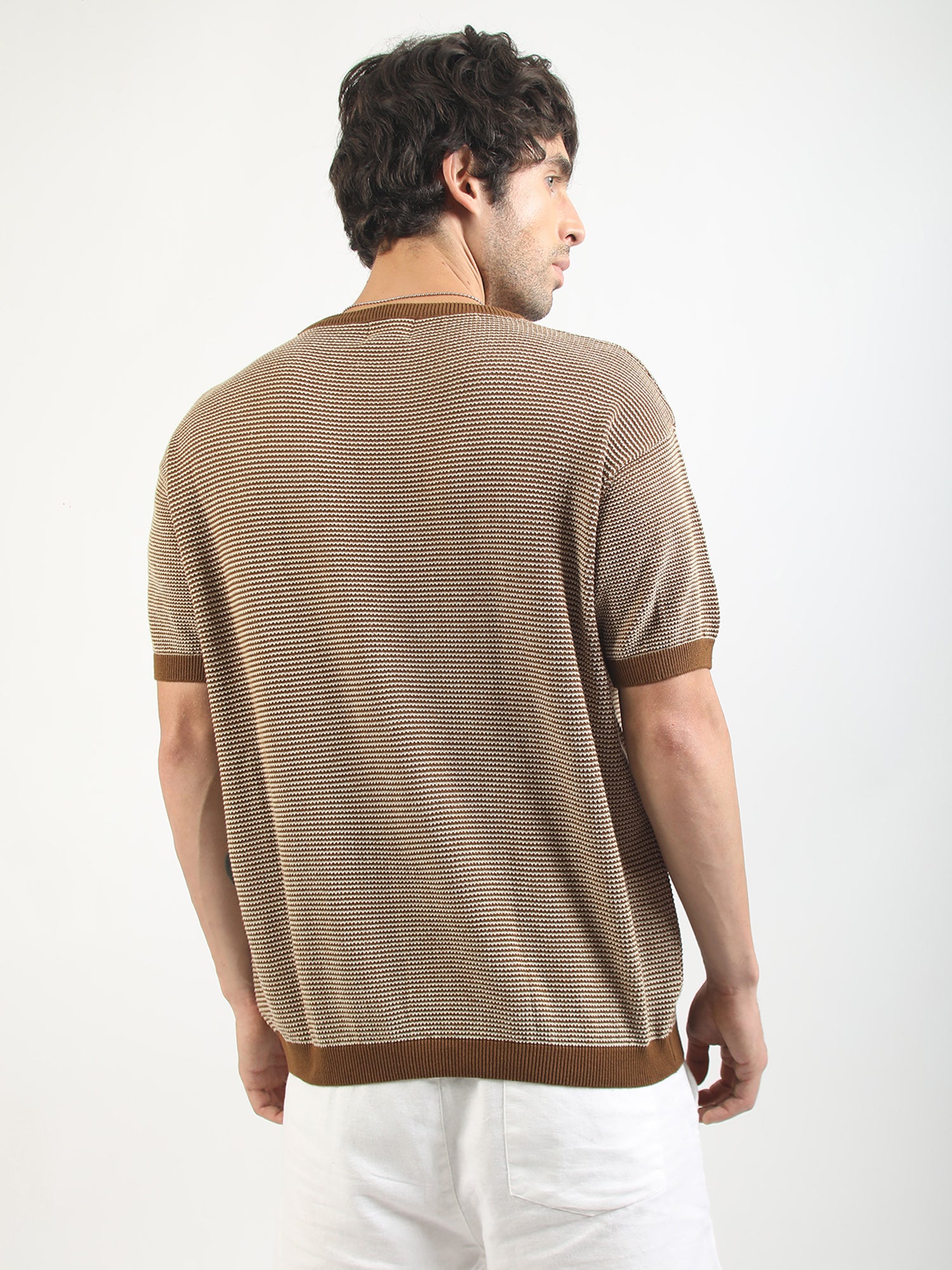 Brown Pixel Knit Flat-Knit Half-Sleeve T-Shirt