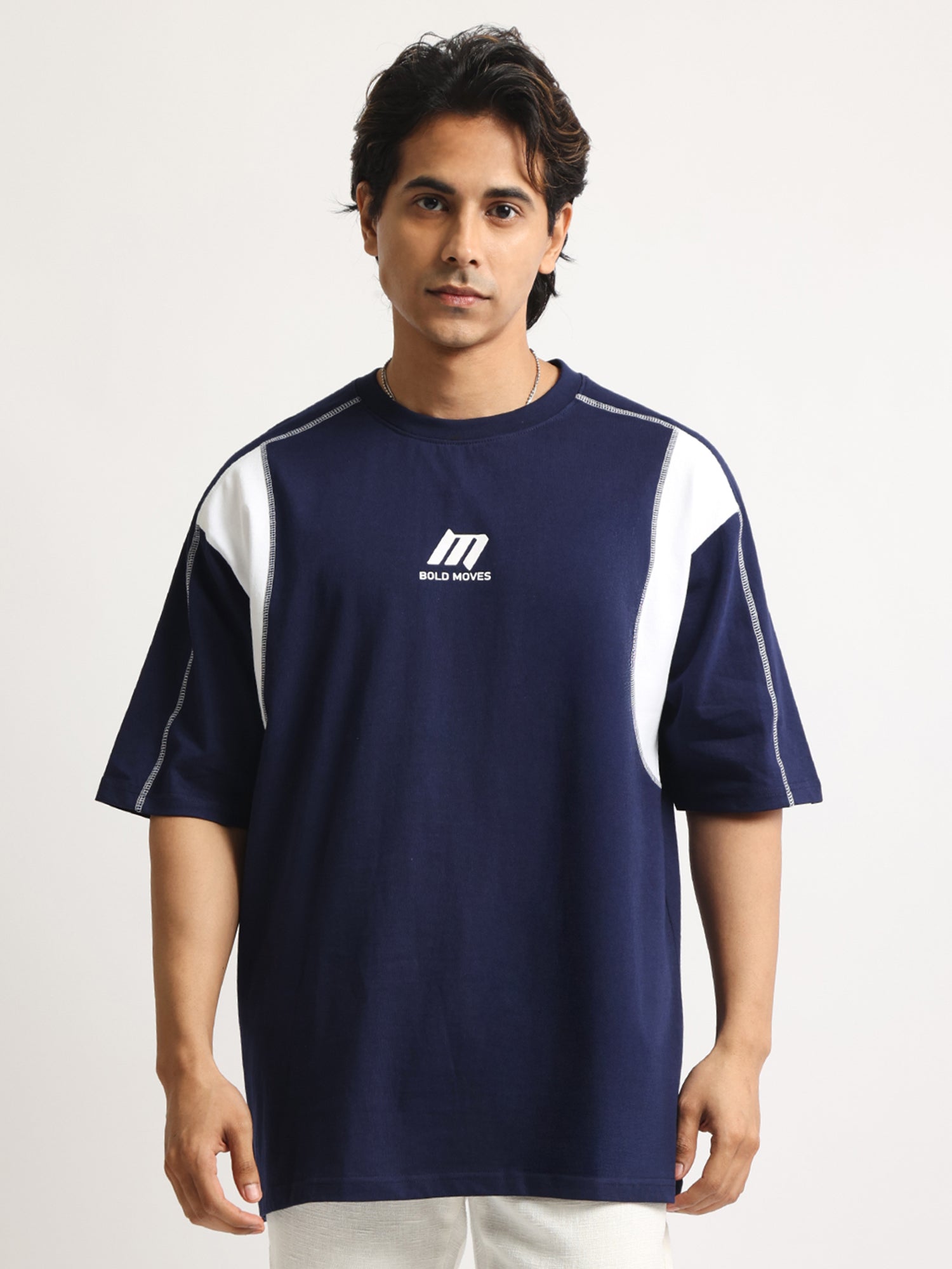 CutPanel Stich Navy Half Sleeve T-Shirt
