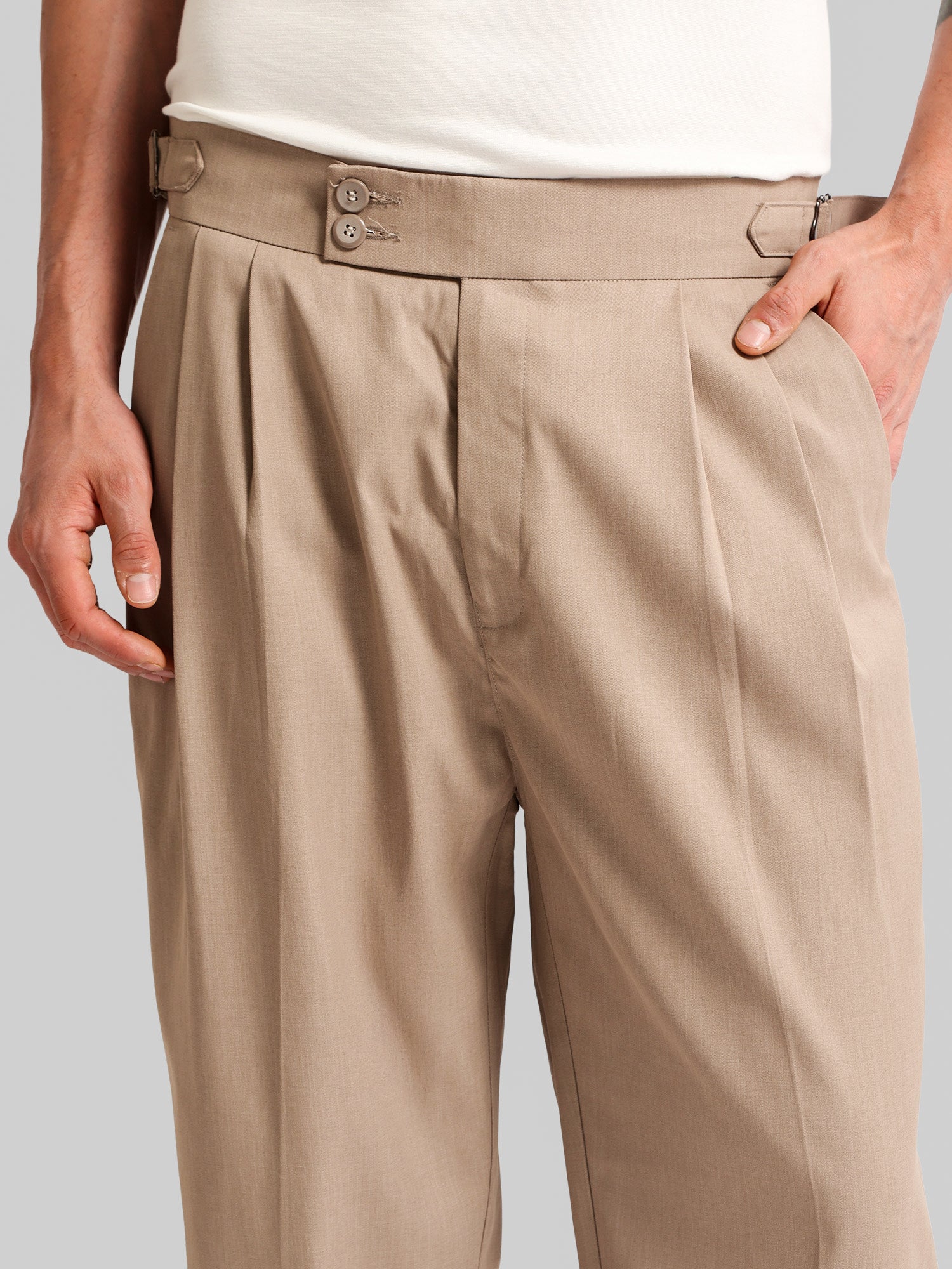 Classic Camel Double-Button Gurkha Trousers
